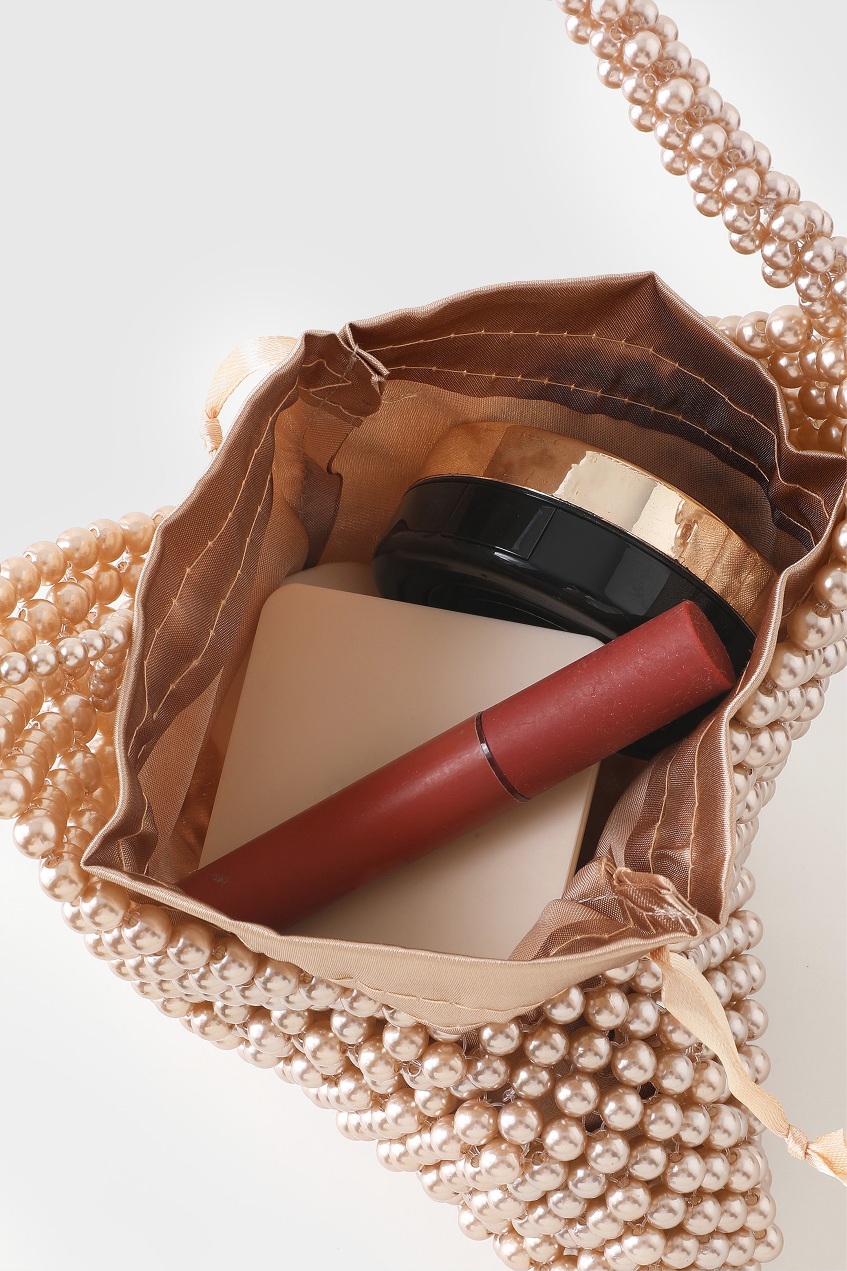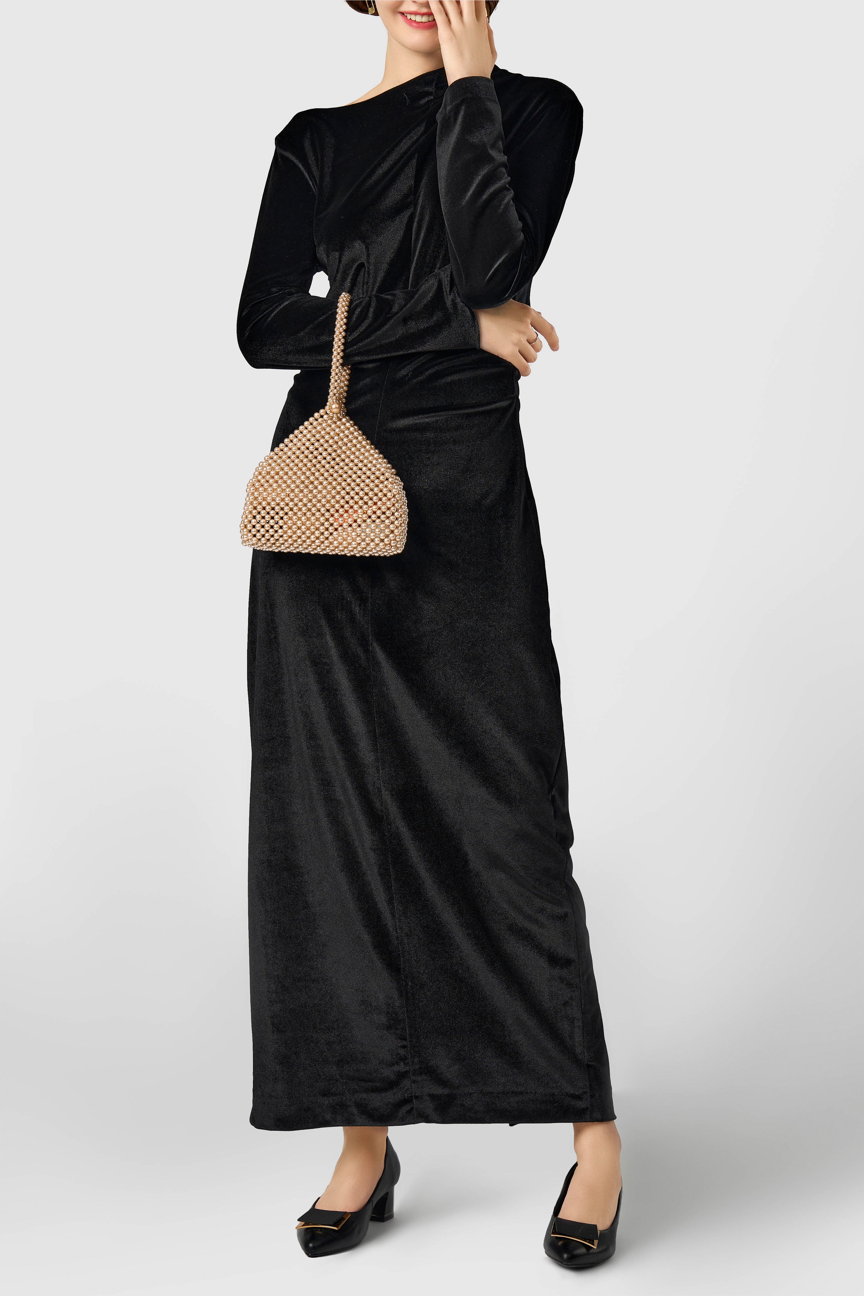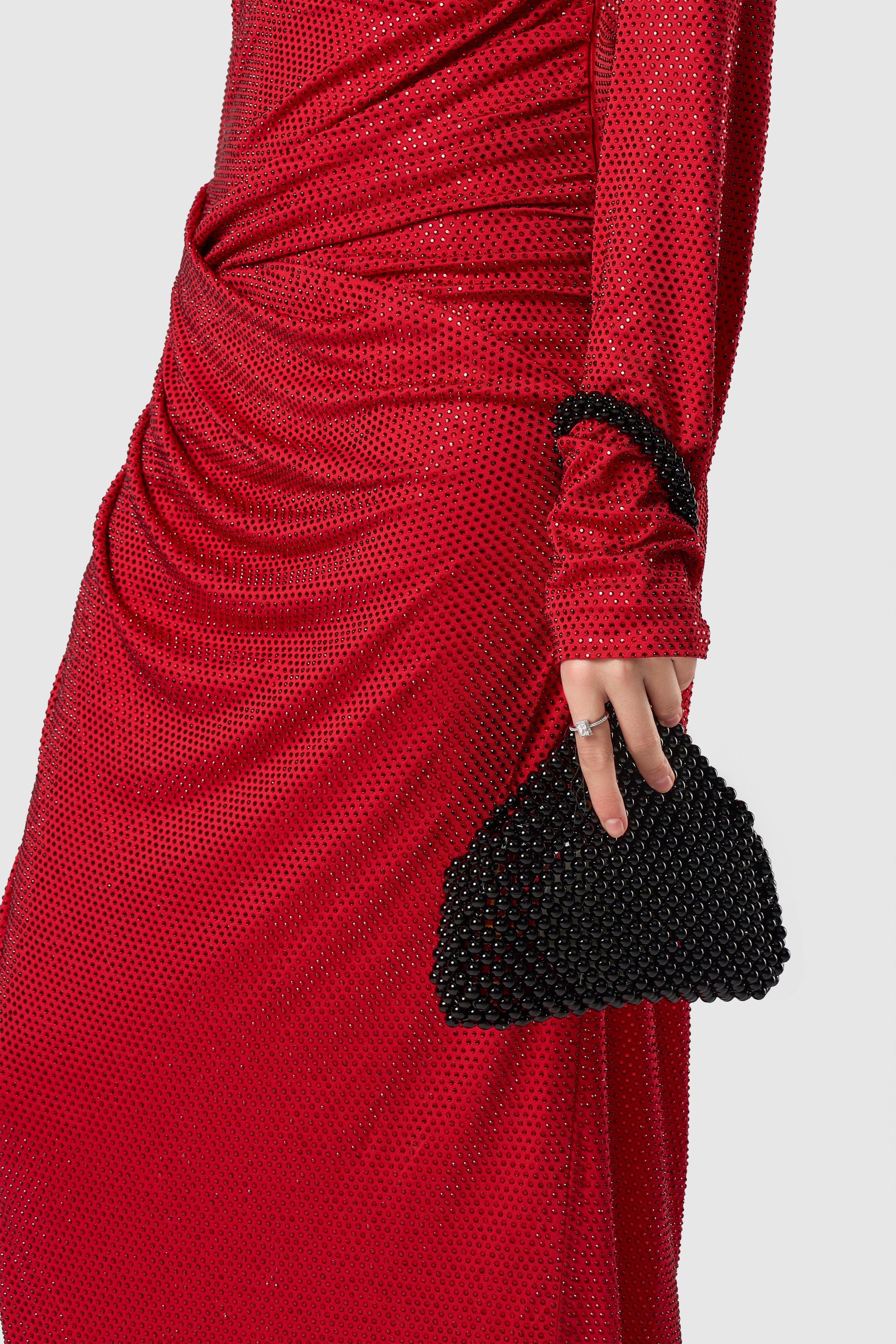 Adorned with intricate beading and lustrous pearls, this clutch adds a touch of vintage charm to any ensemble.
