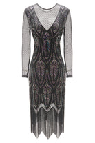Elegant Sheer Sleeve Sequin Fringe Flapper Dress