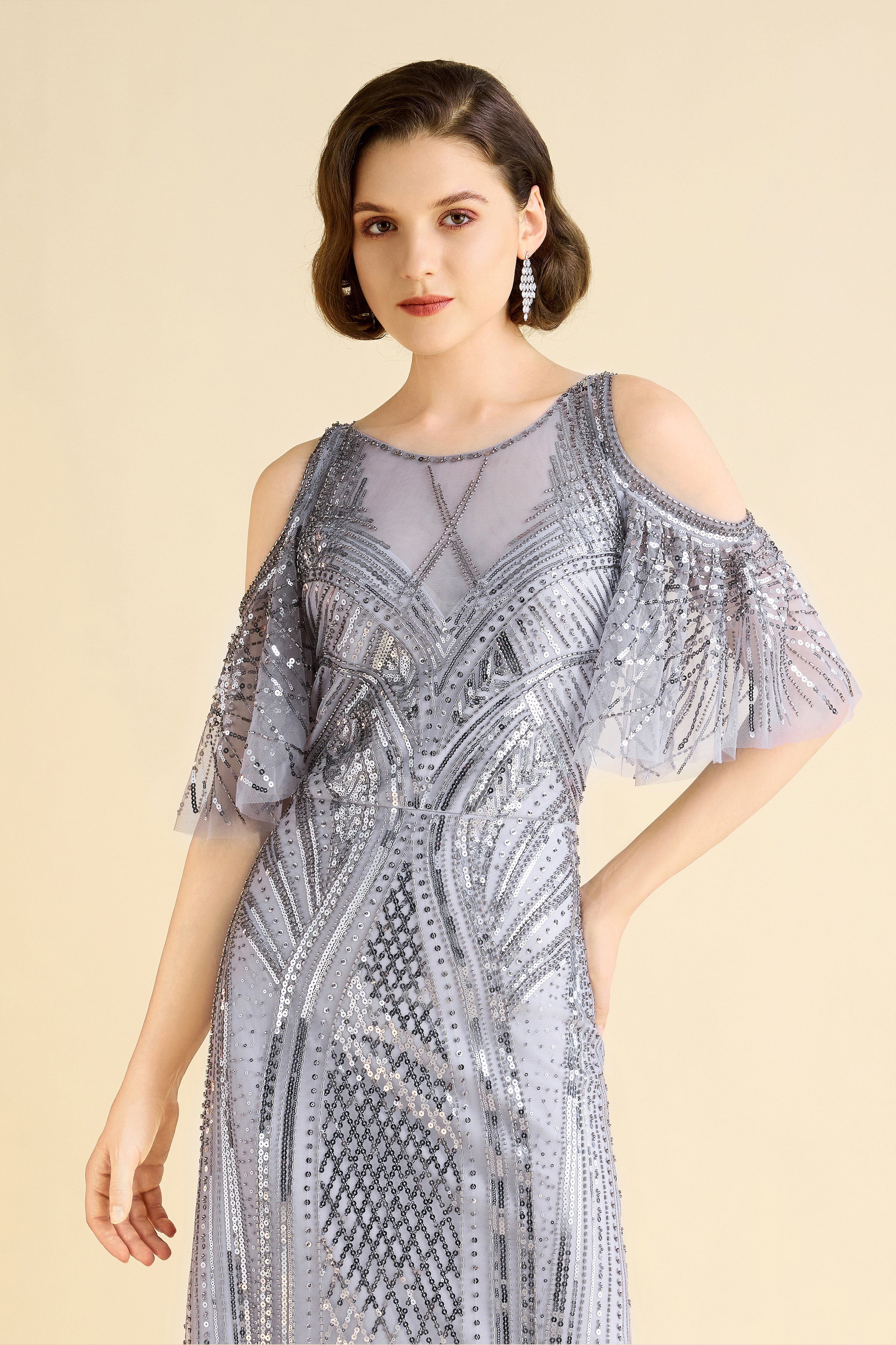 Glamorous Cold-Shoulder Beaded Evening Gown
