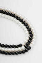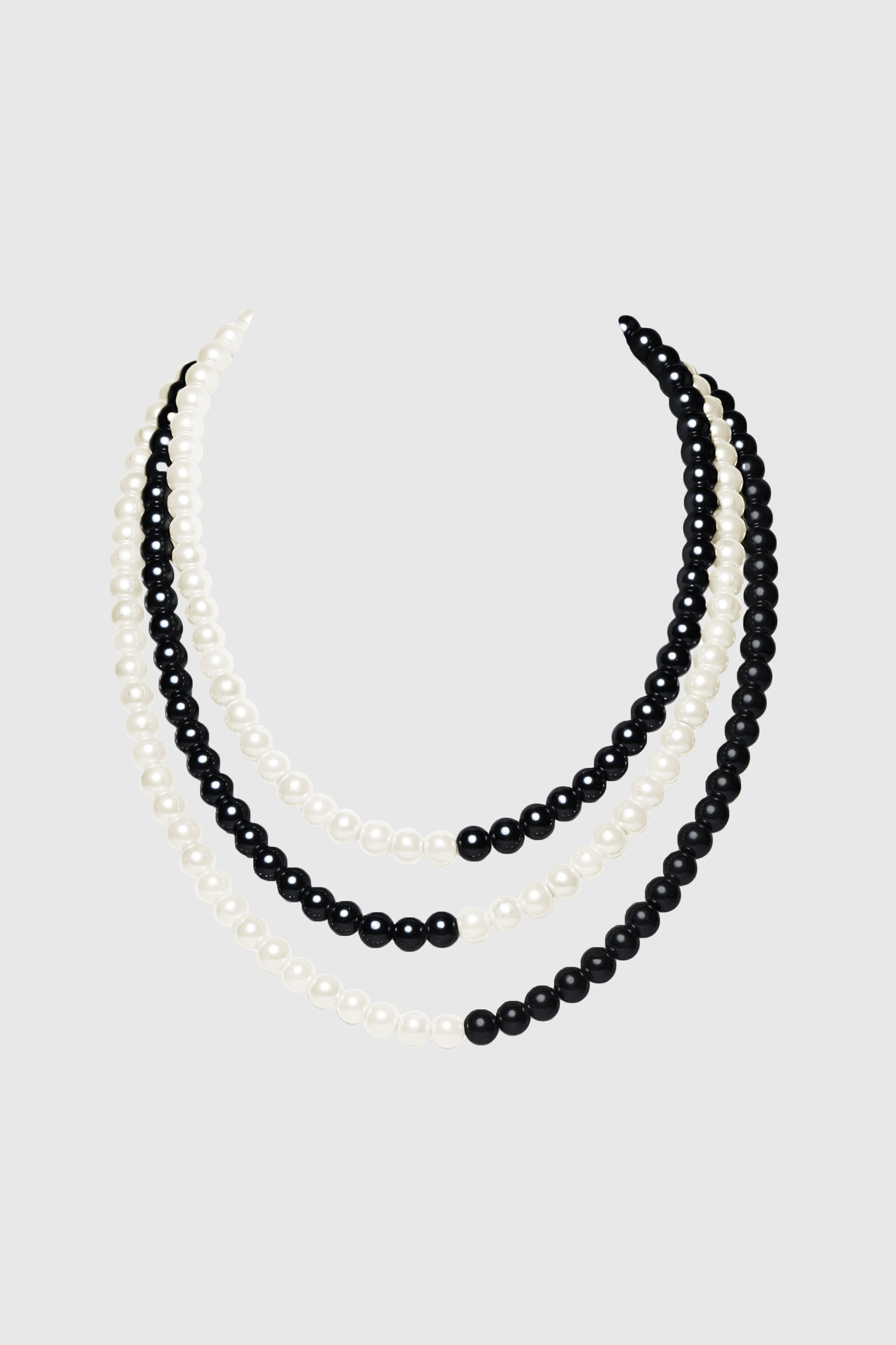 Make a stylish impression with this timeless layered necklace. Its triple-strand design and contrasting beads create a perfect harmony of elegance and boldness.