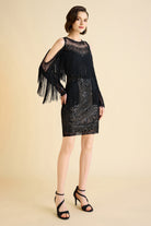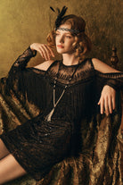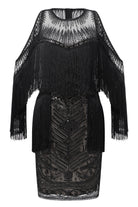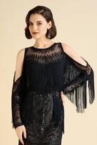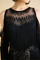 Glamorous Off-Shoulder Beaded Fringe Flapper Dress