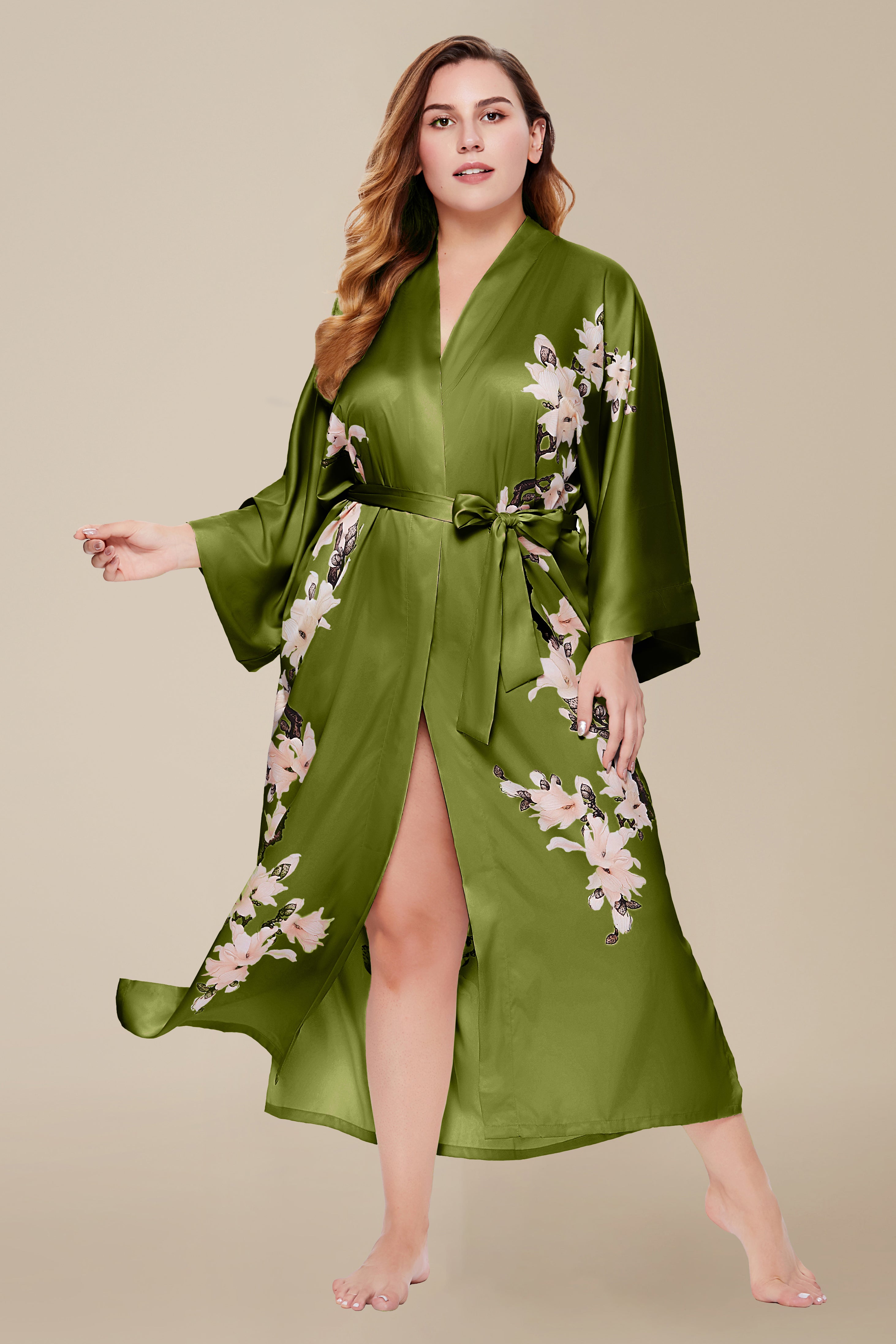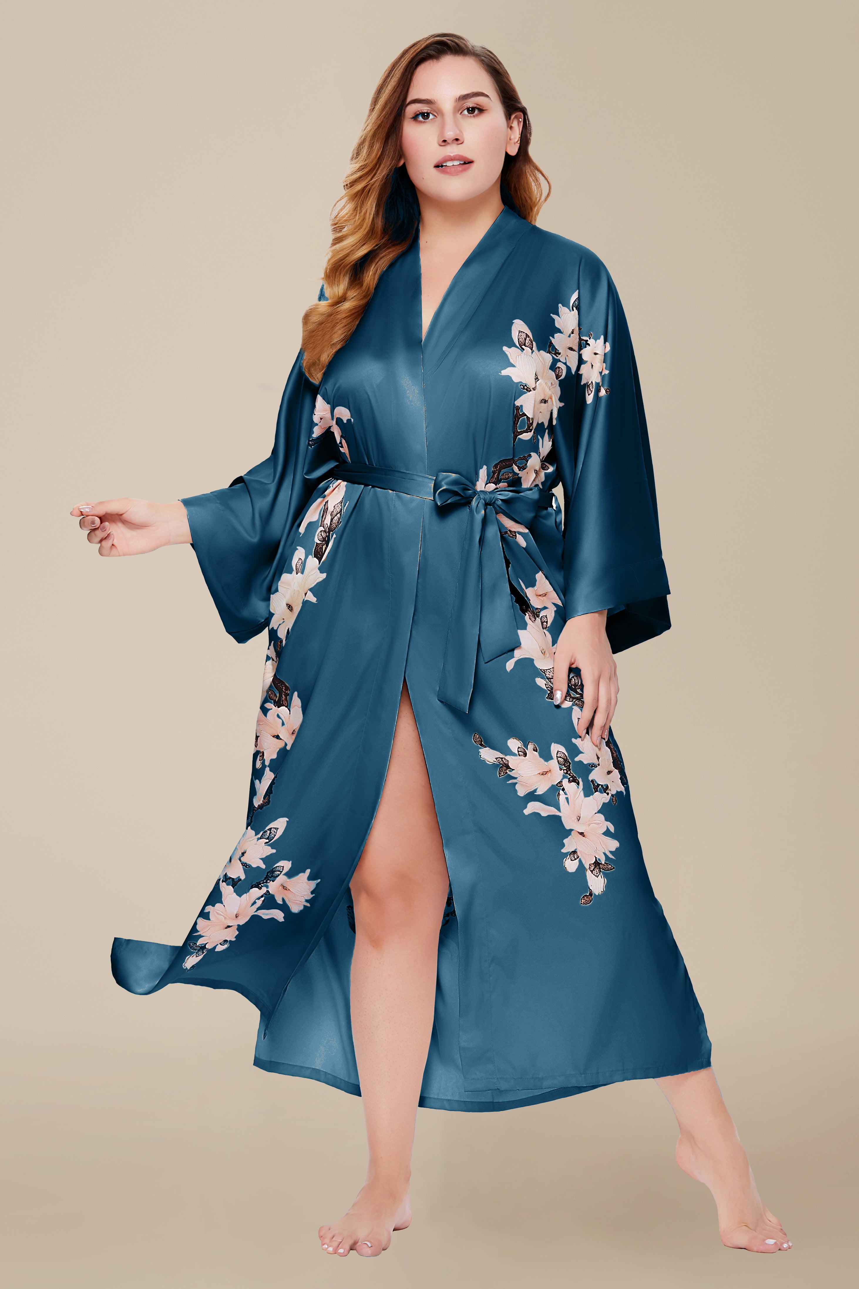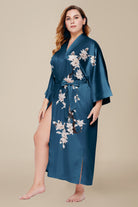 Plus-Size Floral Satin Kimono Robe
