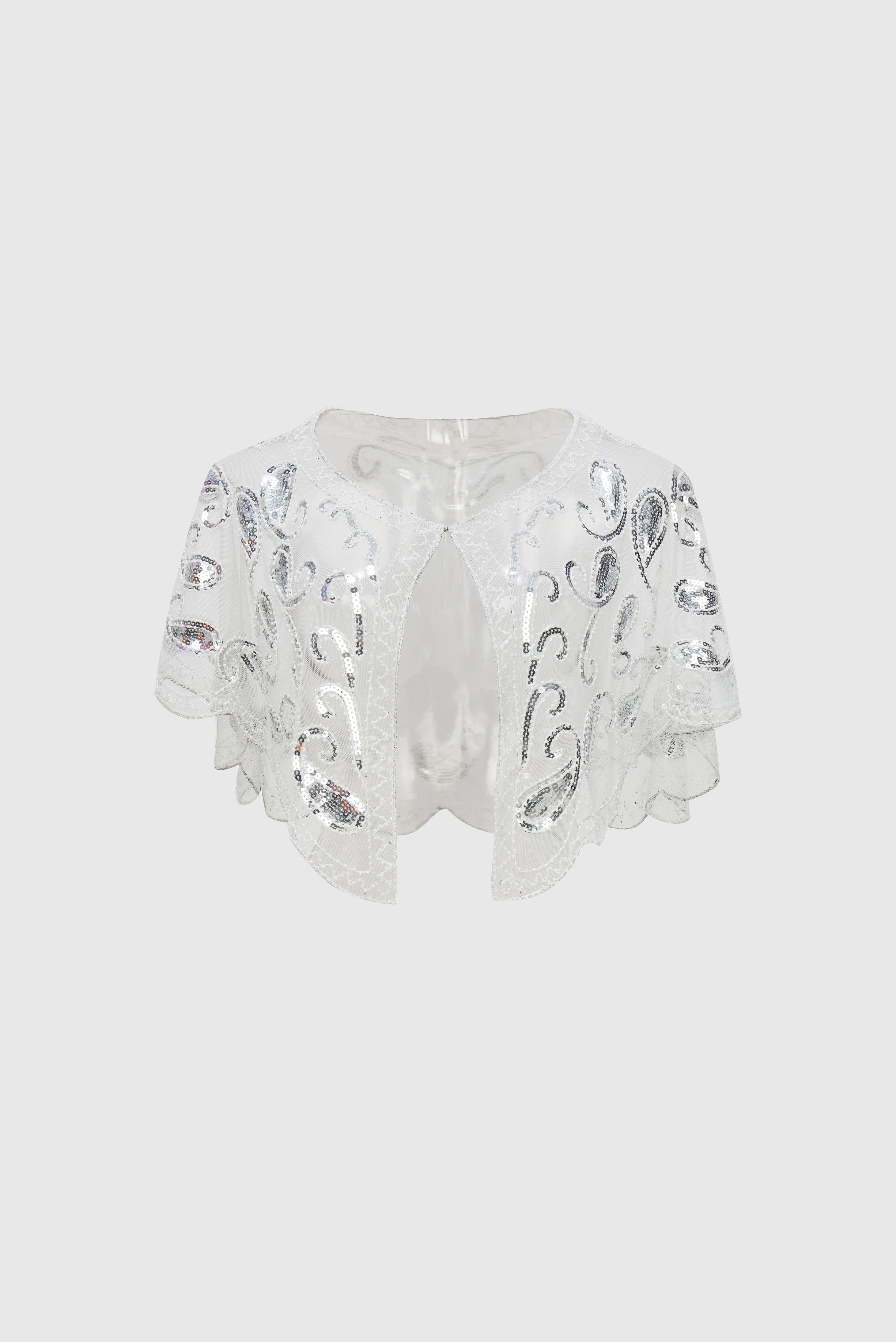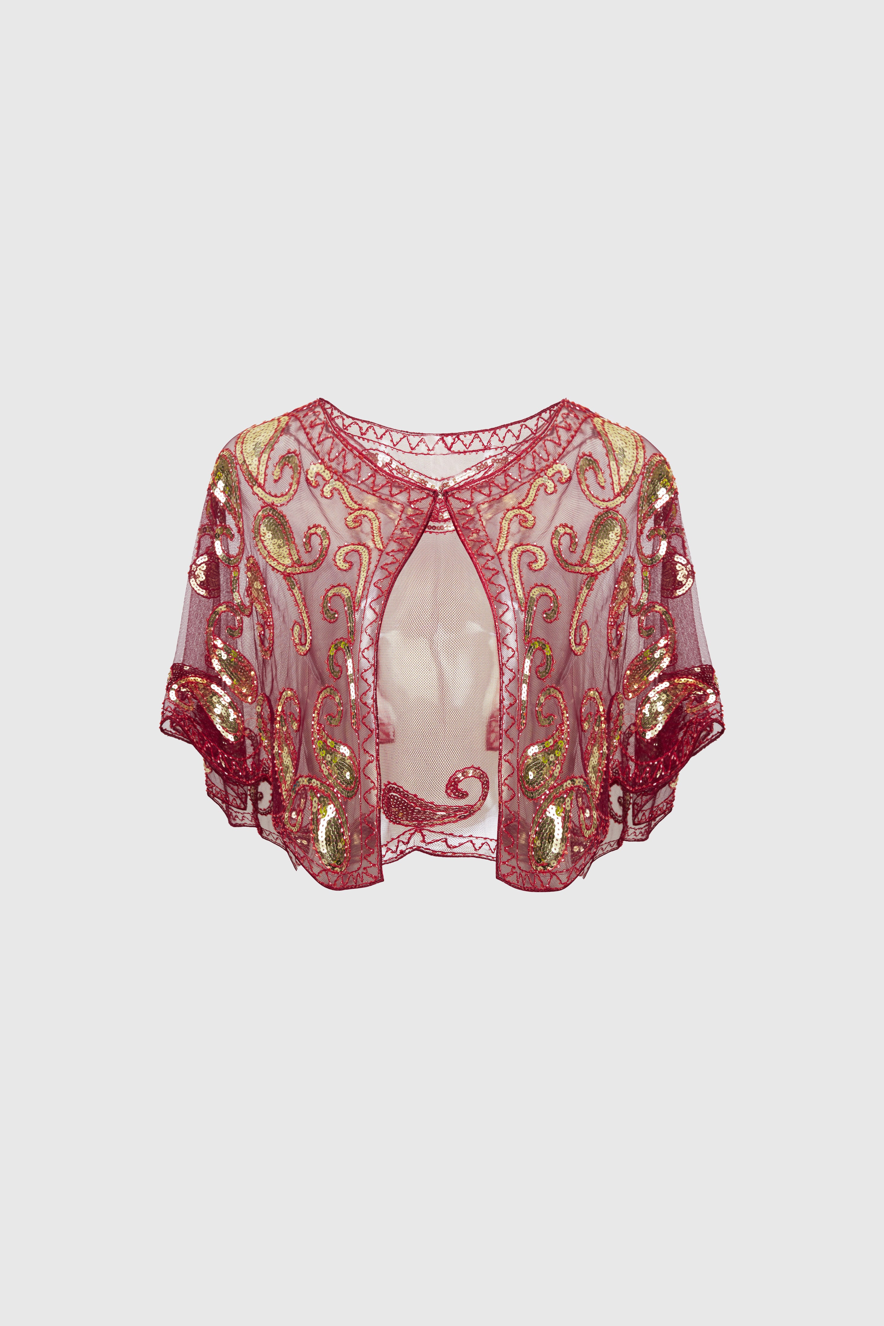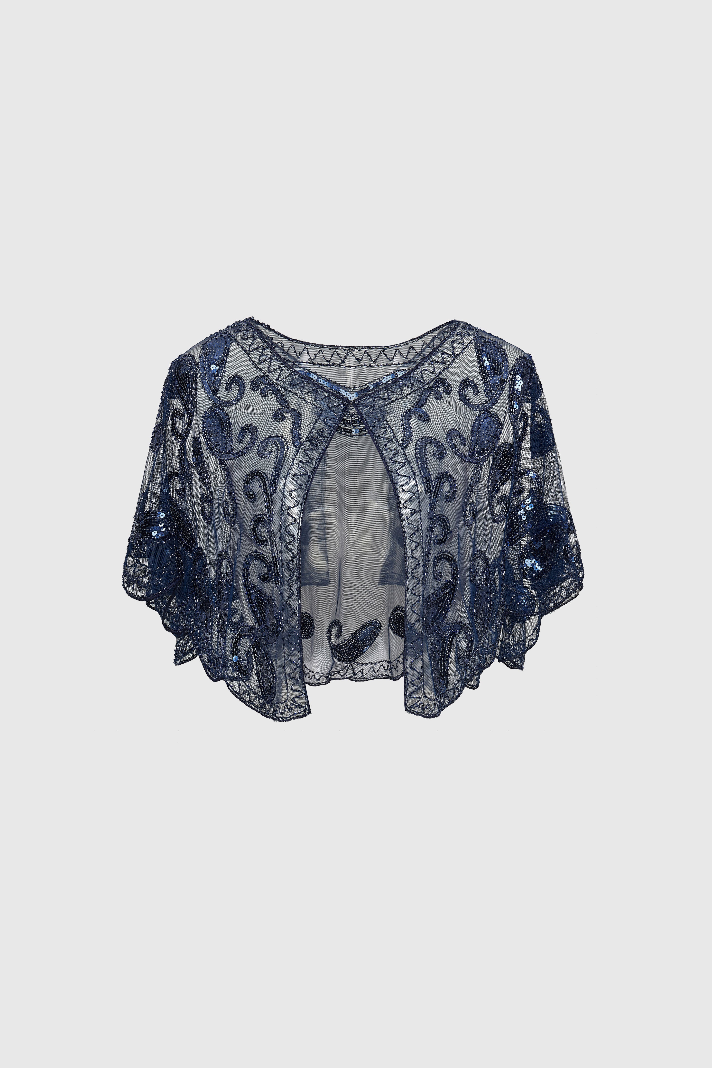 The intricate embroidery of this vintage shawl captures the essence of opulent artistry, radiating a captivating brilliance.