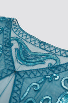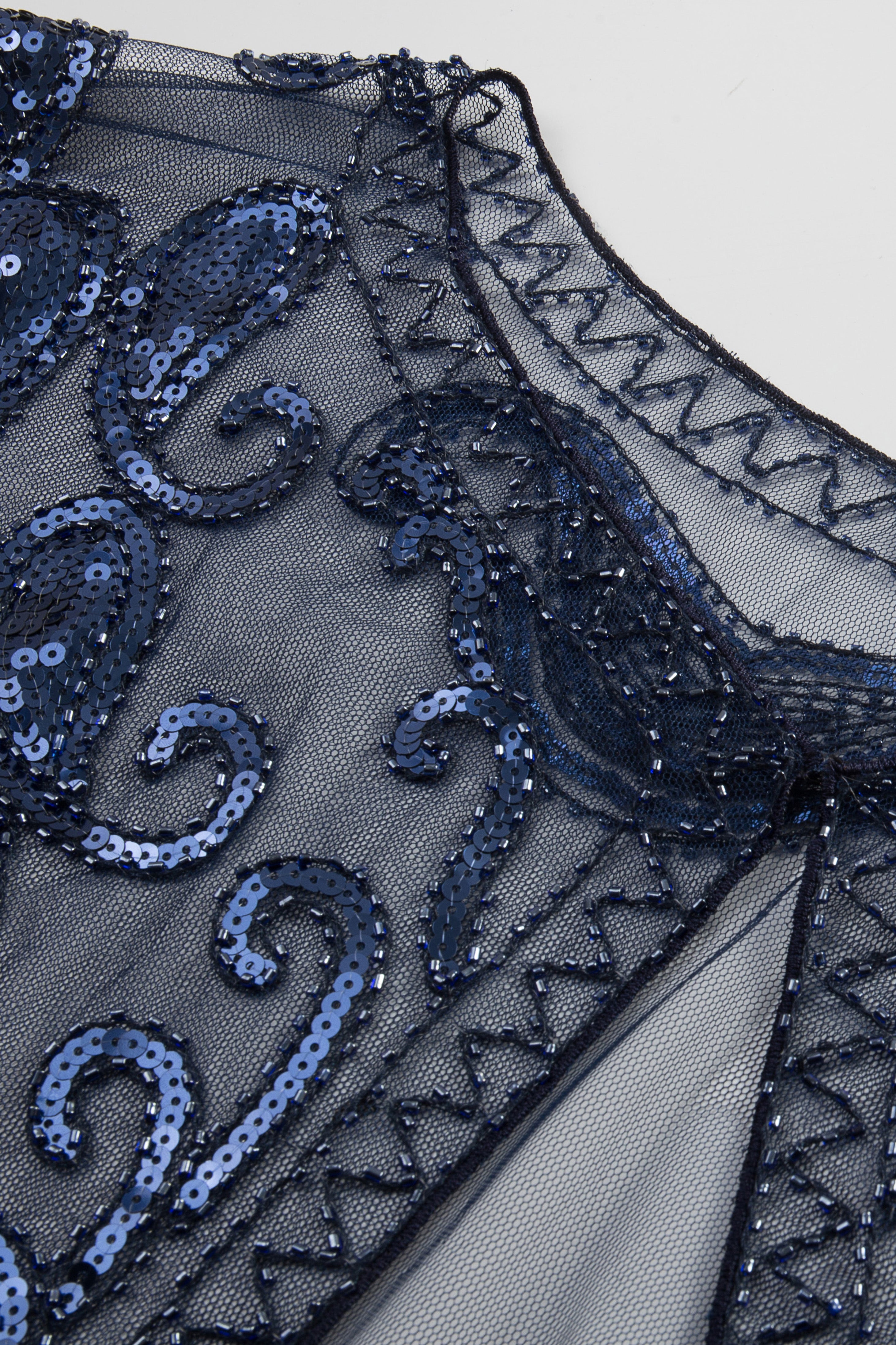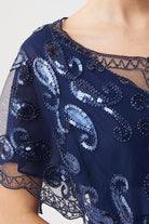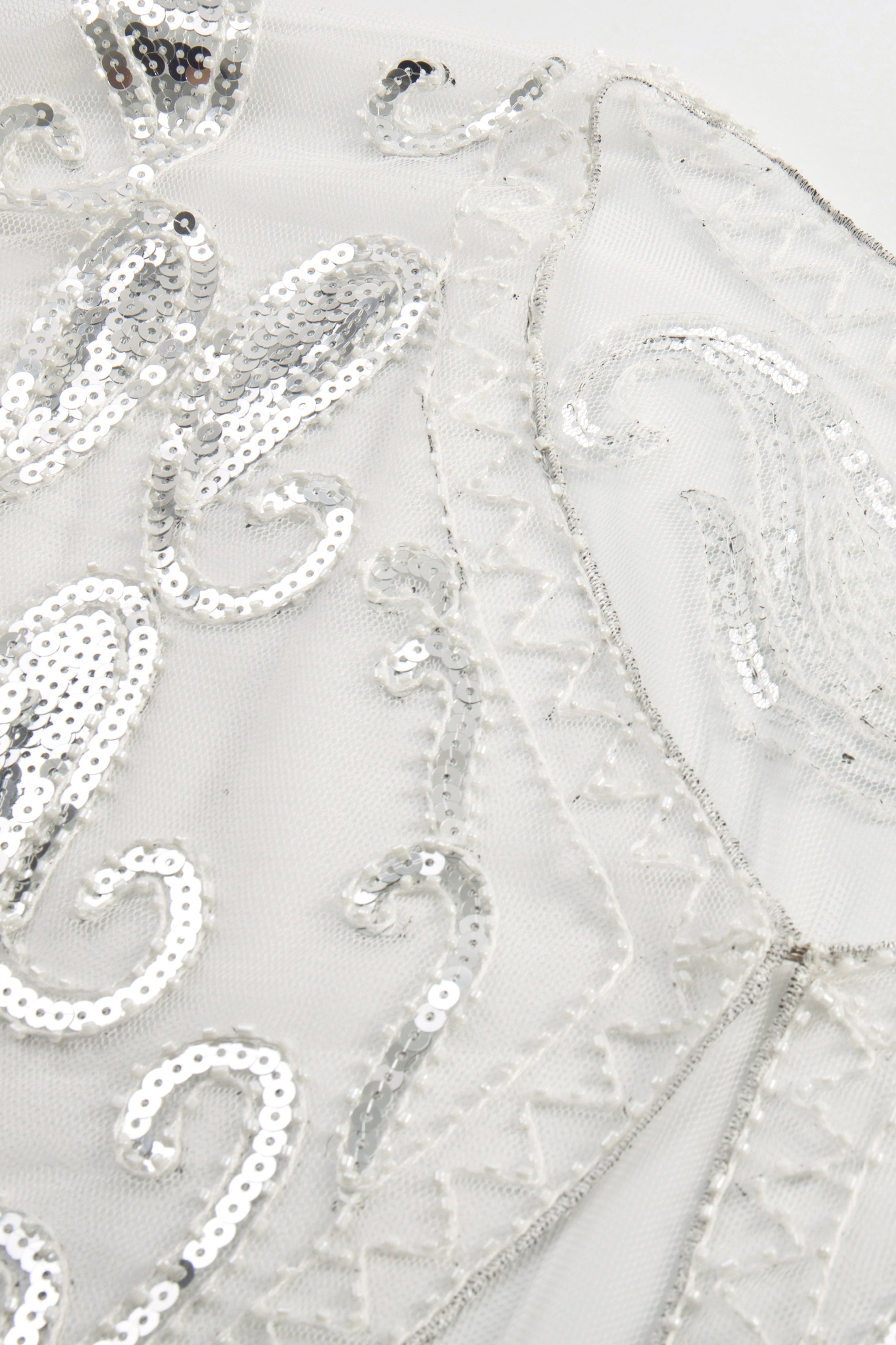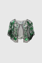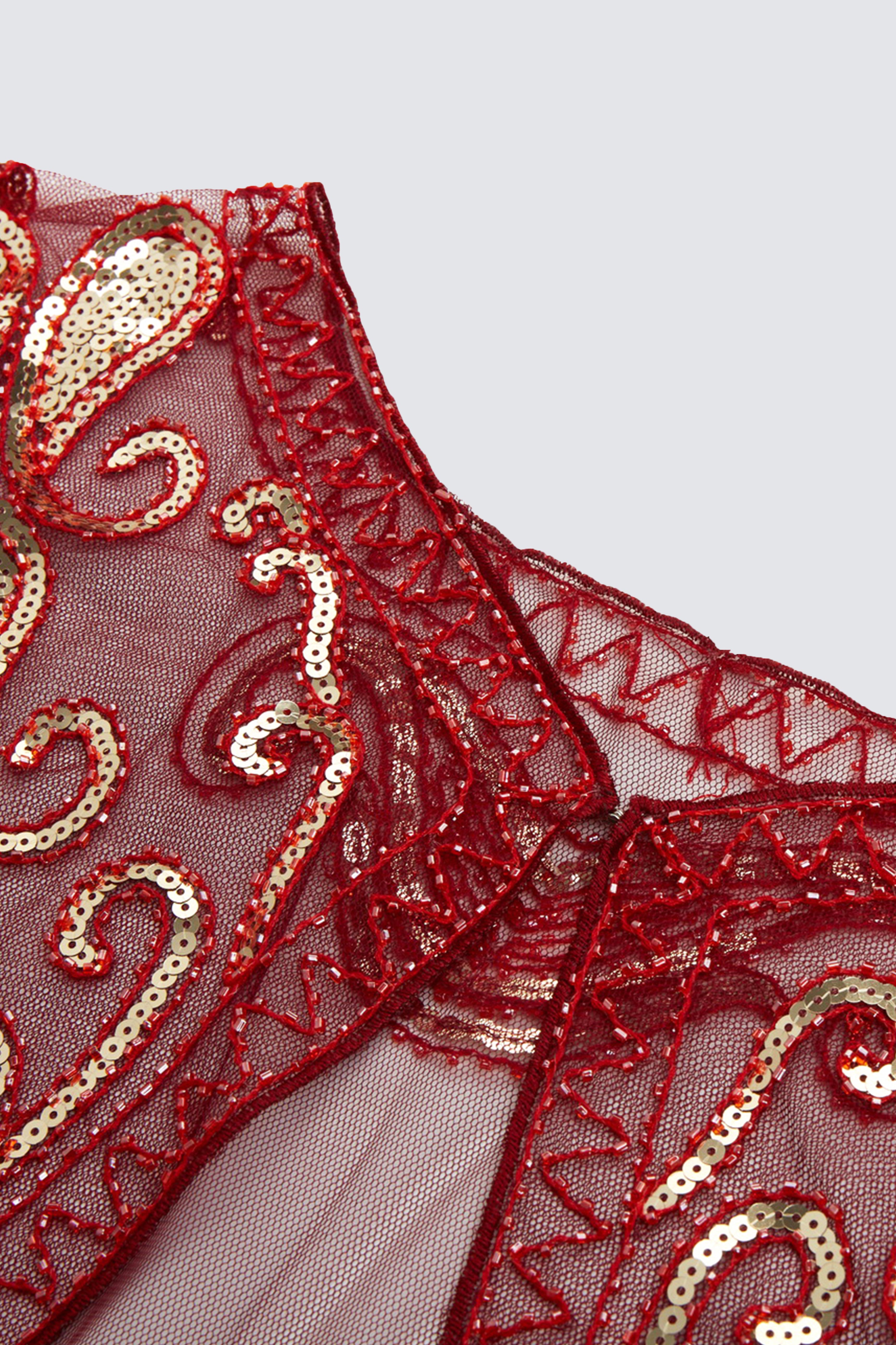 The intricate embroidery of this vintage shawl captures the essence of opulent artistry, radiating a captivating brilliance.
