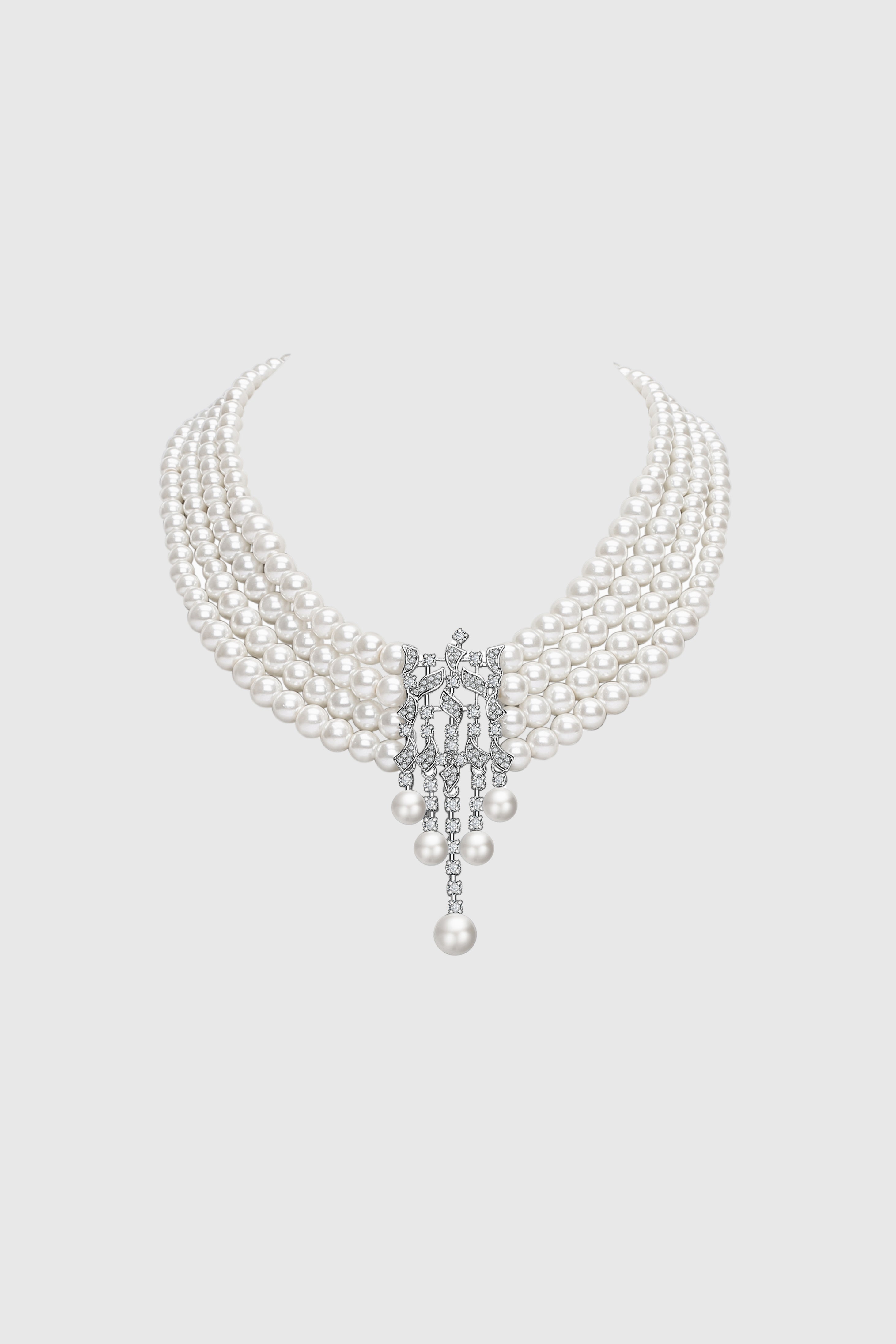 Rhinestone Studded Multi-layer Pearl Necklace