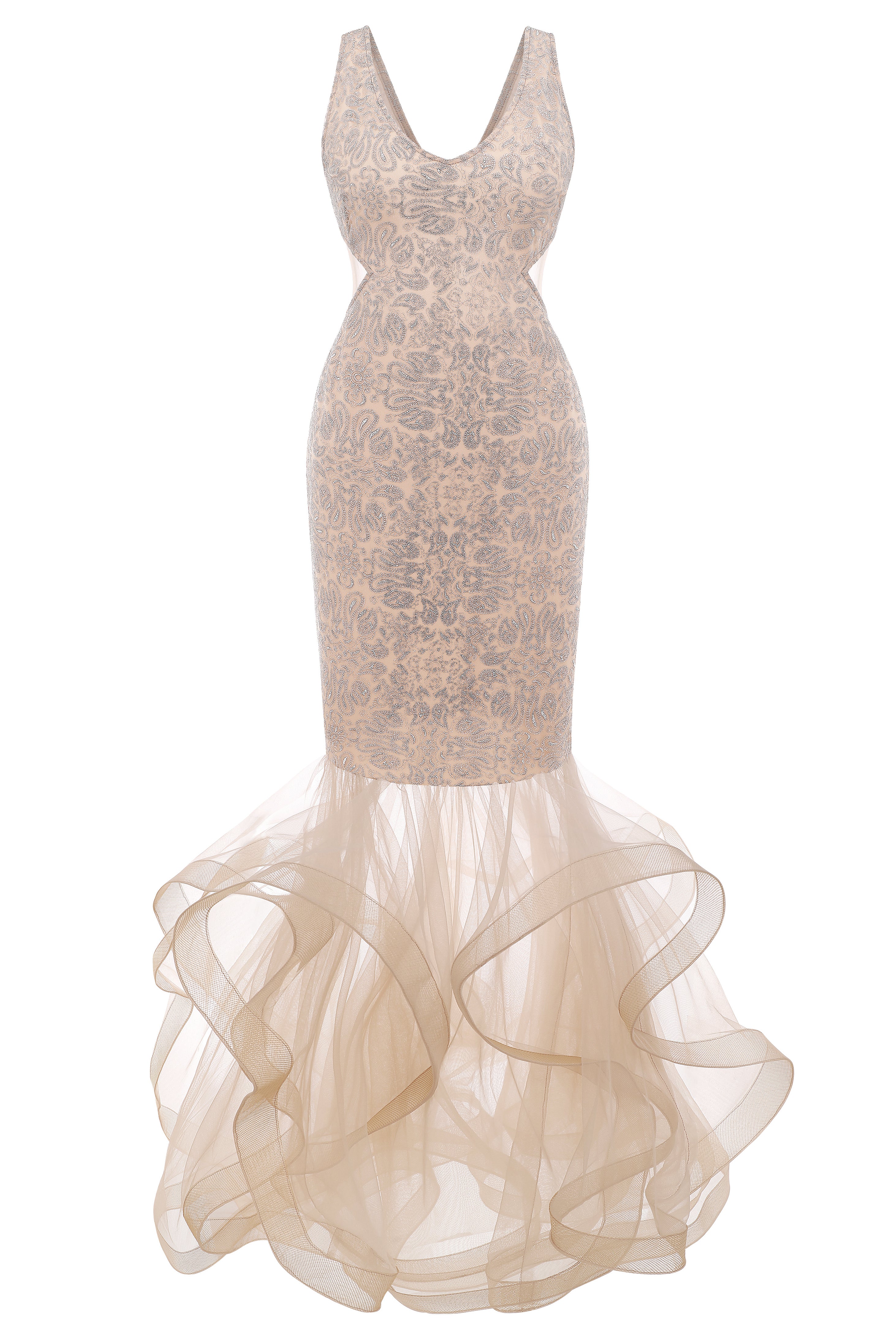 The exquisite embroidery of the dress and the soft yarn is a wonderful combination. The organza design at the fishtail makes the gown dress more light and three-dimensional.