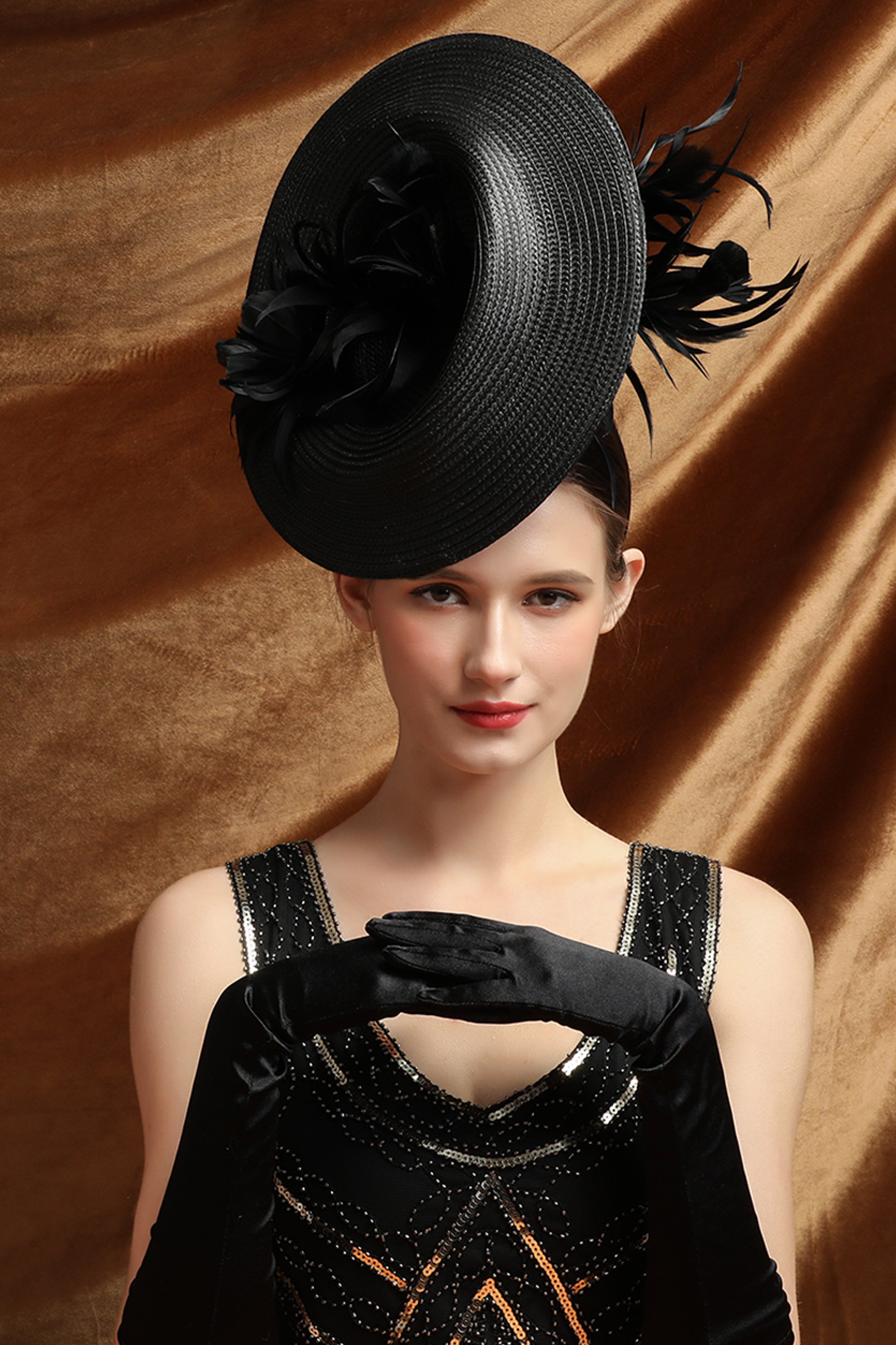 This elegant, oversized feather fascinator offers a dynamic, shifting visual effect from different angles, exuding sophistication and grace.