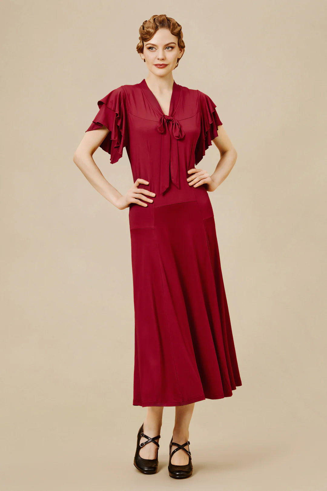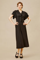 Vintage Tie Neck Midi Ruffle Dress